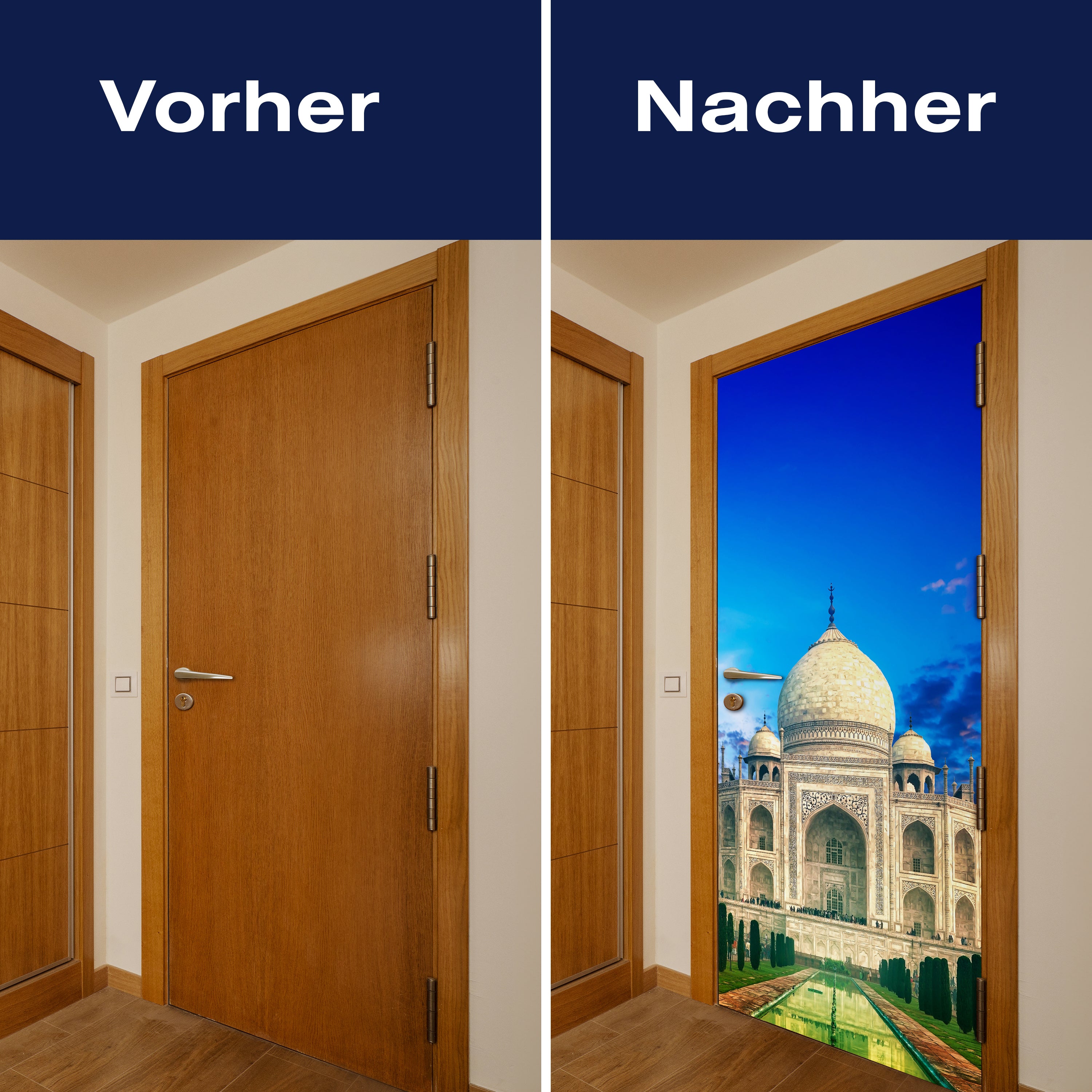 Hast du jemals darüber nachgedacht, wie eine einfache Veränderung deinen Wohnraum komplett umgestalten kann? Die Türtapete Taj Mahal Indien Sonnenuntergang von Wandmotiv24 ist genau das, was du brauchst, um deinem Zuhause einen Hauch von Einzigartigkeit und Stil zu verleihen. Dieses einzigartige Design erzielt eine atemberaubende visuelle Wirkung, die jeden Betrachter in den Bann zieht.