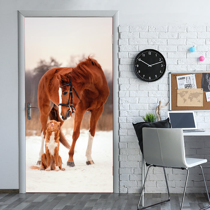 Entdecke die Türtapete Tierische Freunde Hund & Pferd, Tiere