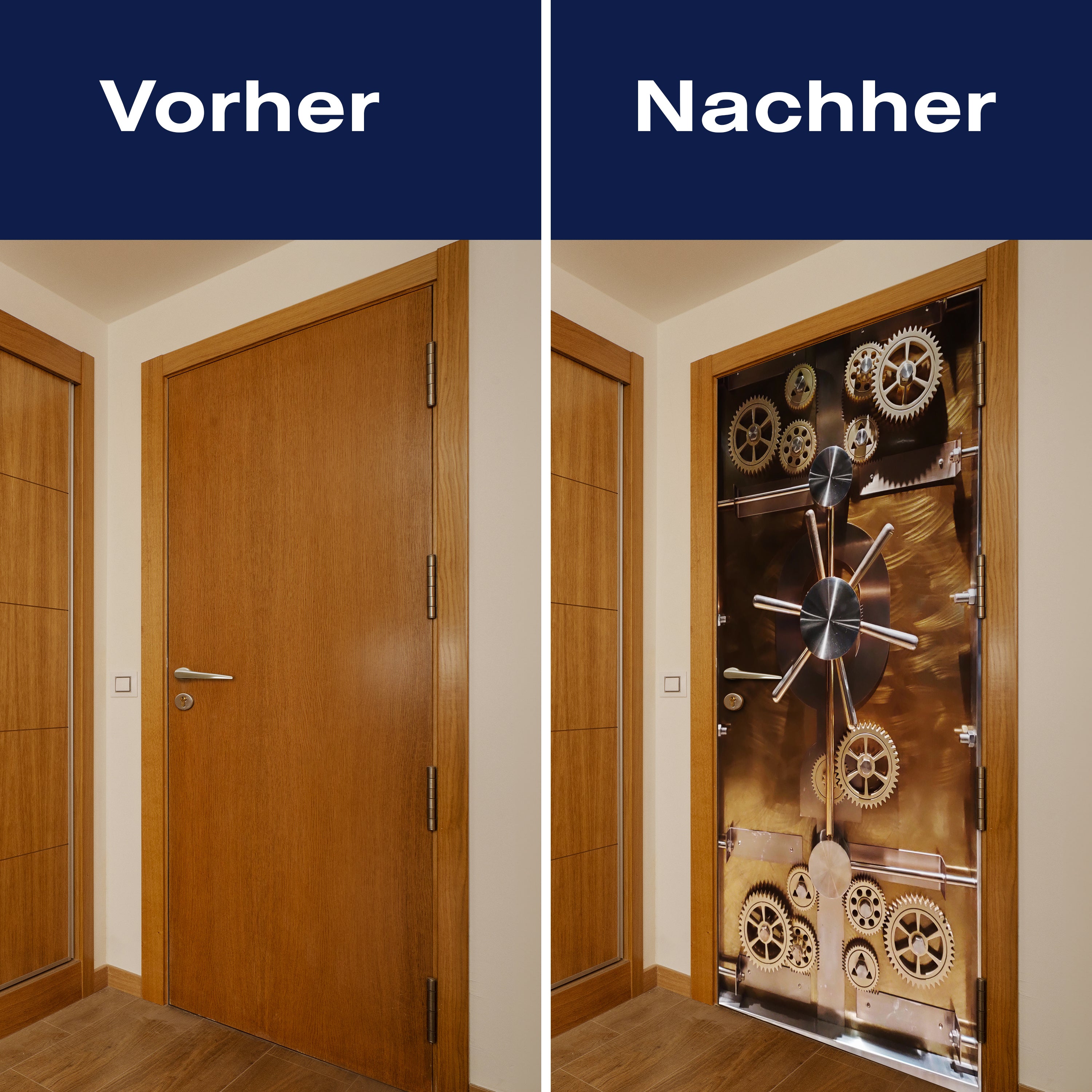 Hast du jemals darüber nachgedacht, wie eine einfache Veränderung deinen Wohnraum komplett umgestalten kann? Die Türtapete Tresor Tür Zahnräder, Safe, Zahnrad von Wandmotiv24 ist genau das, was du brauchst, um deinem Zuhause einen Hauch von Einzigartigkeit und Stil zu verleihen. Dieses einzigartige Design erzielt eine atemberaubende visuelle Wirkung, die jeden Betrachter in den Bann zieht.