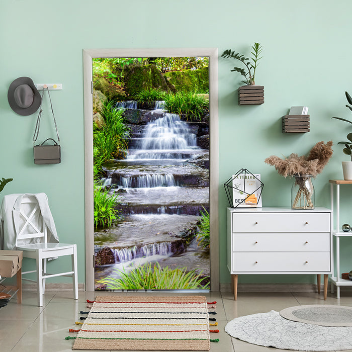 Entdecke die Türtapete Wasserfall am Bach, Stufen, Wasser