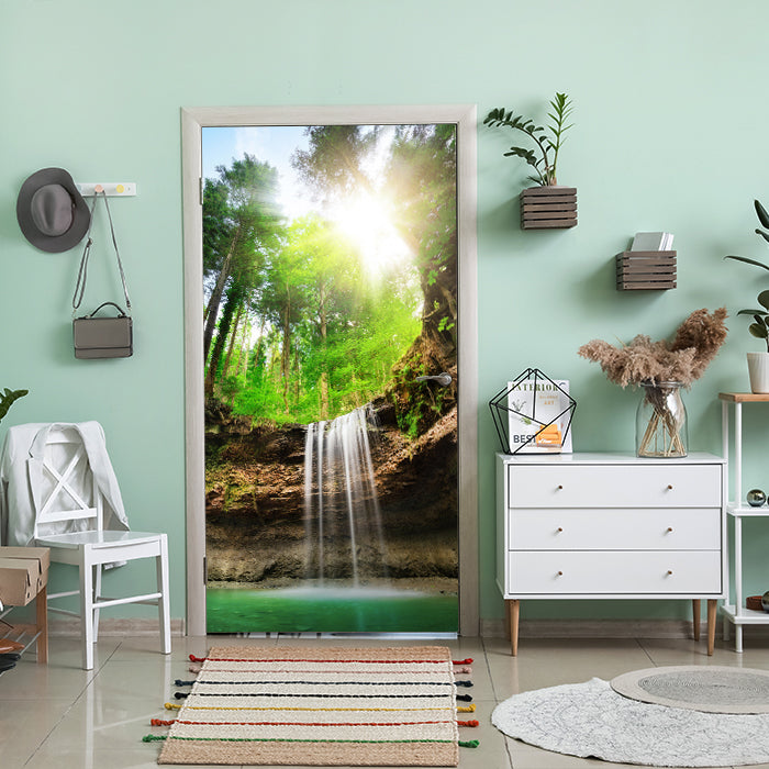 Entdecke die Türtapete Wasserfall im Wald, Sonne, Wasser, Natur