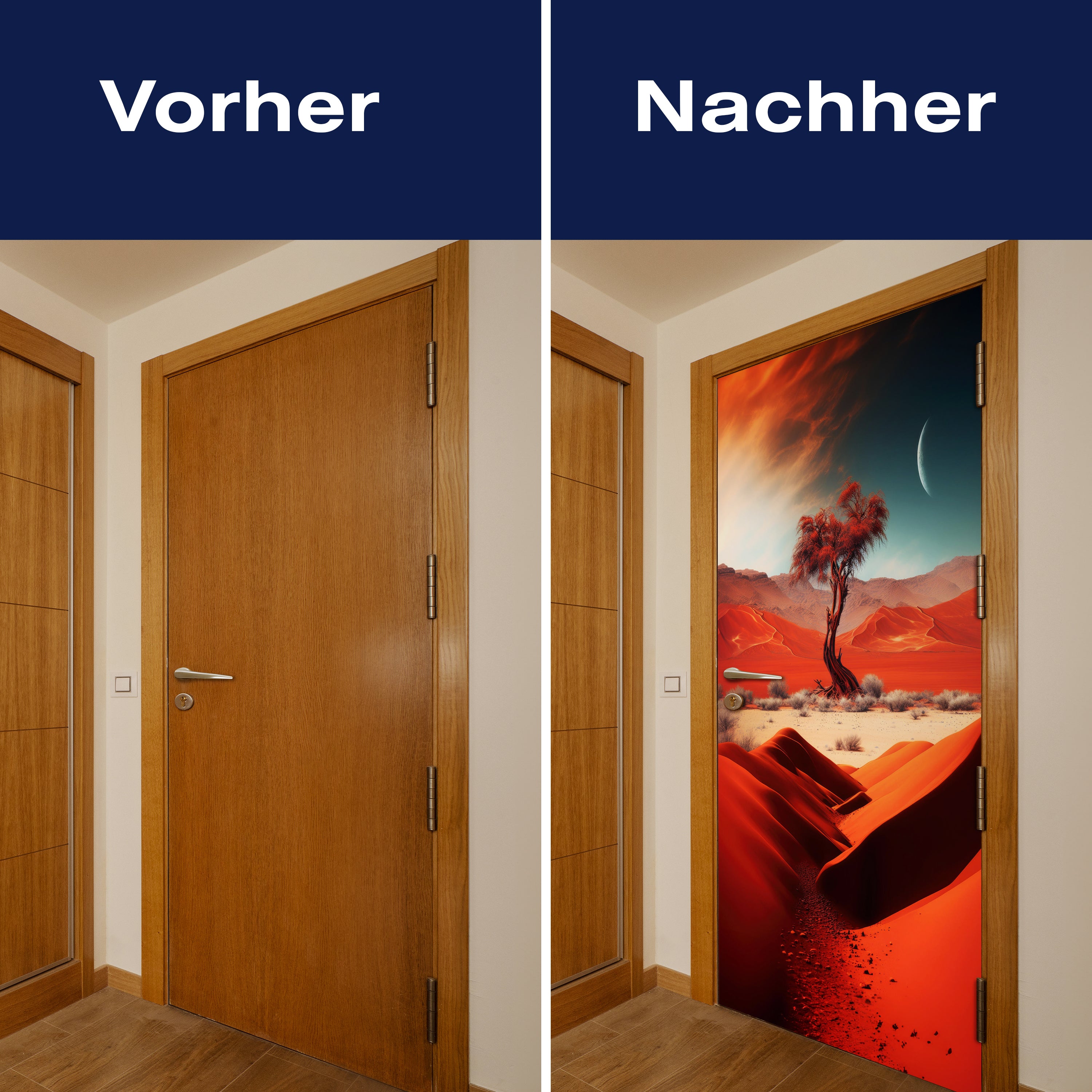 Mit unserer Türtapete verwandelst du jede gewöhnliche Tür in ein Kunstwerk. Ob du die Atmosphäre deines Wohnraums aufwerten oder deinem Haus einen neuen Charakter verleihen möchtest, unsere Türtapeten bieten eine einzigartige Möglichkeit, Veränderung zu gestalten. Lass dich von der Einfachheit der Anwendung begeistern und erlebe, wie deine Räume durch die Kraft des Designs und der Farbe transformiert werden.