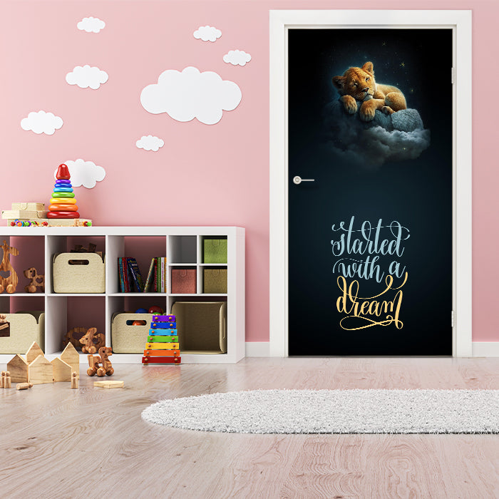 Entdecke die Türtapete schlafender Löwe, Spruch, Motivation